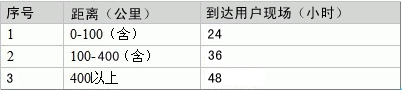 - 当接到您的上门服务请求后,复安指定服务机构会按照下表规定的时间提供上门服务。